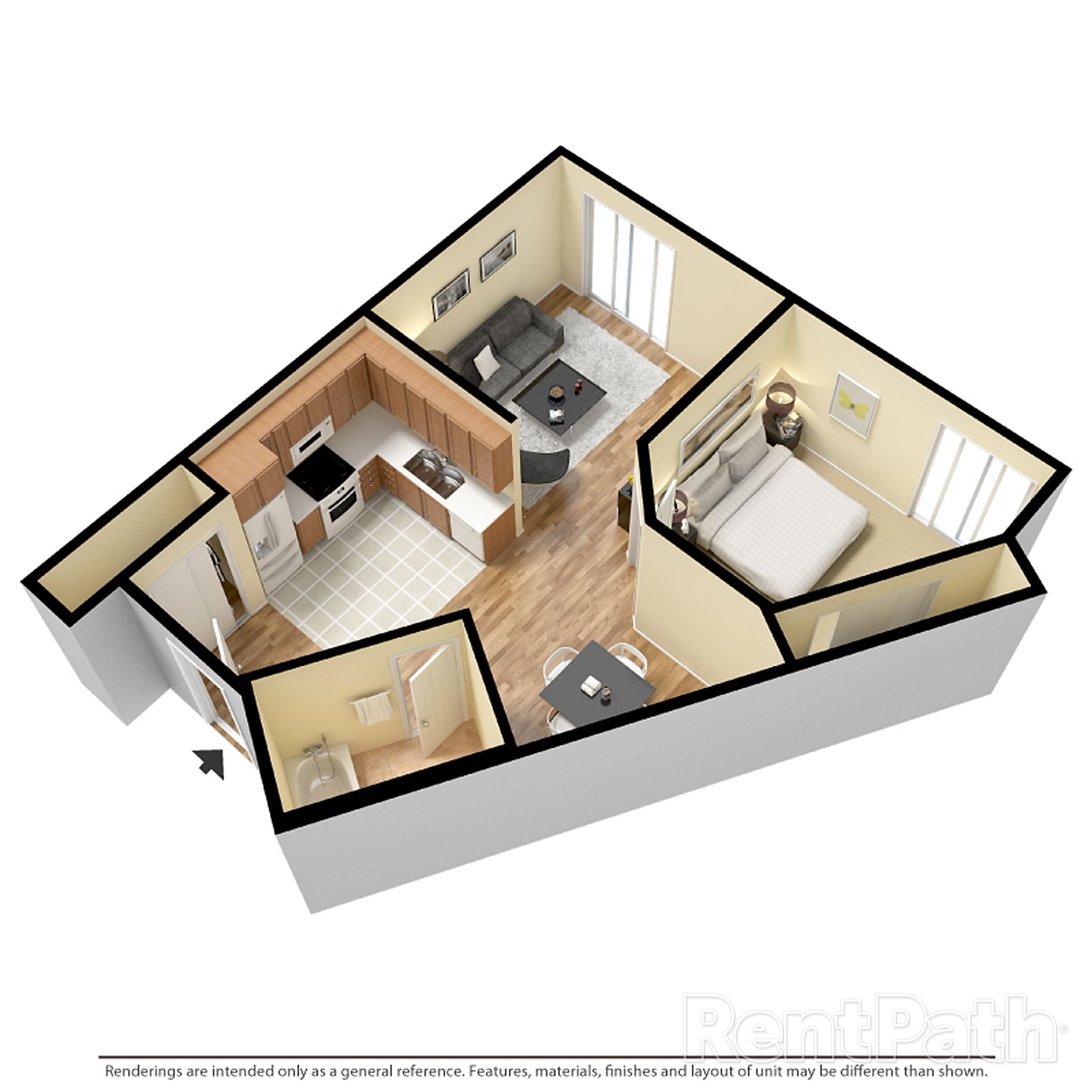 The 1 bedroom B units are a must see, they offer a unique floor plan that maximizes the square footage. These renovated units feature a modern feel for a great price.