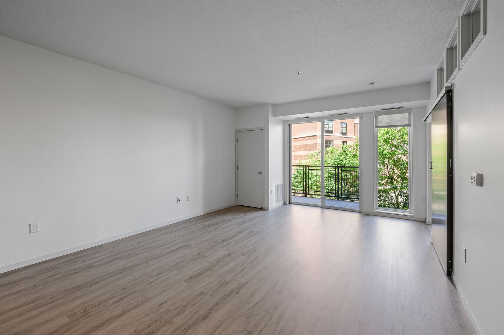 The sophistication continues with soft grey luxury vinyl plank flooring, offering both durability and elegance. Upgraded LED lighting enhances the ambiance, creating a bright and inviting atmosphere. Step into the airy living space, which flows effortlessly to a private north facing balcony, providing the perfect retreat for morning coffee or evening relaxation.